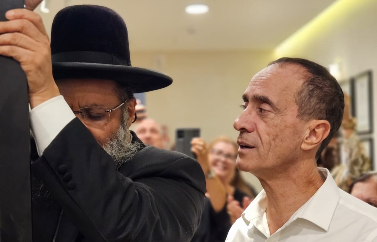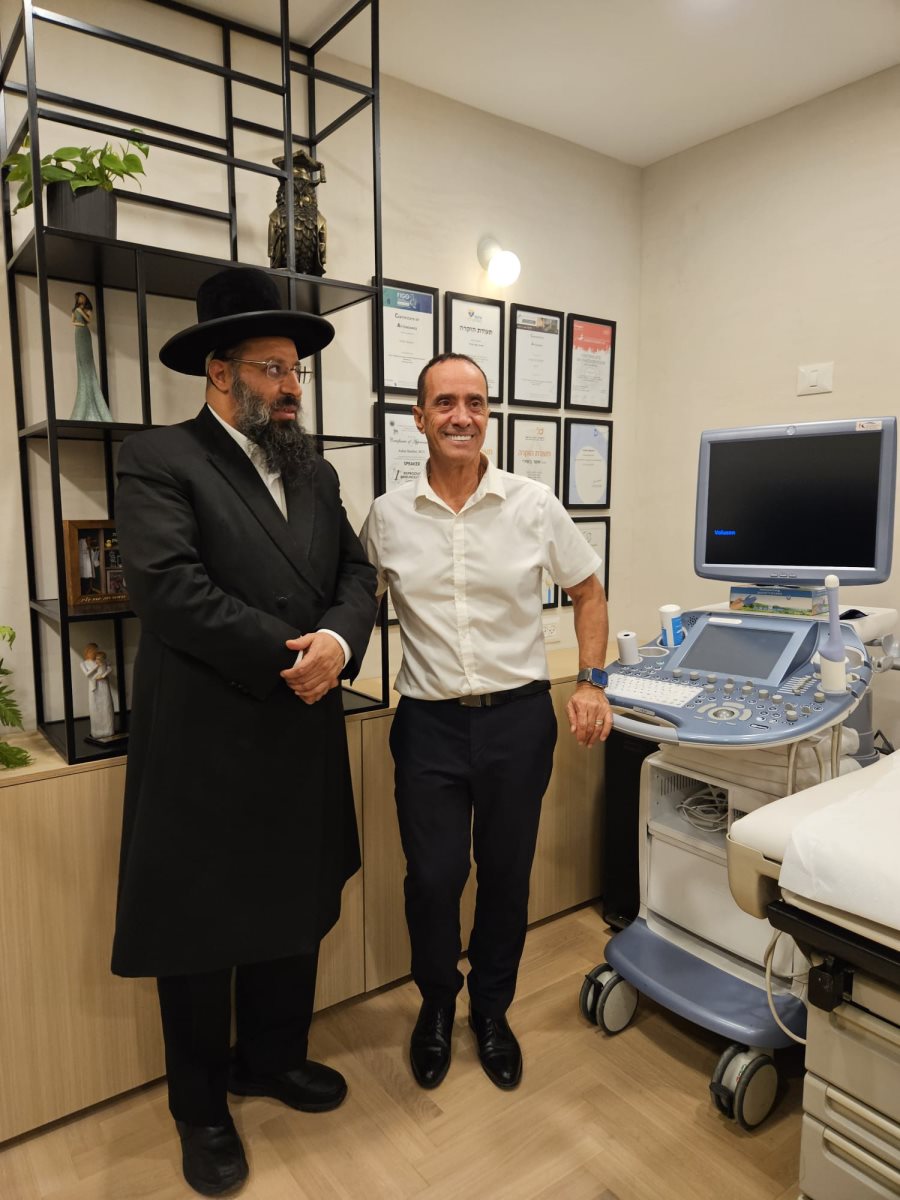 הרב נתנאל שריקי ‫מנתיבות הגיע לקבוע מזוזה בקליניקה החדשה של פרופ' בשירי