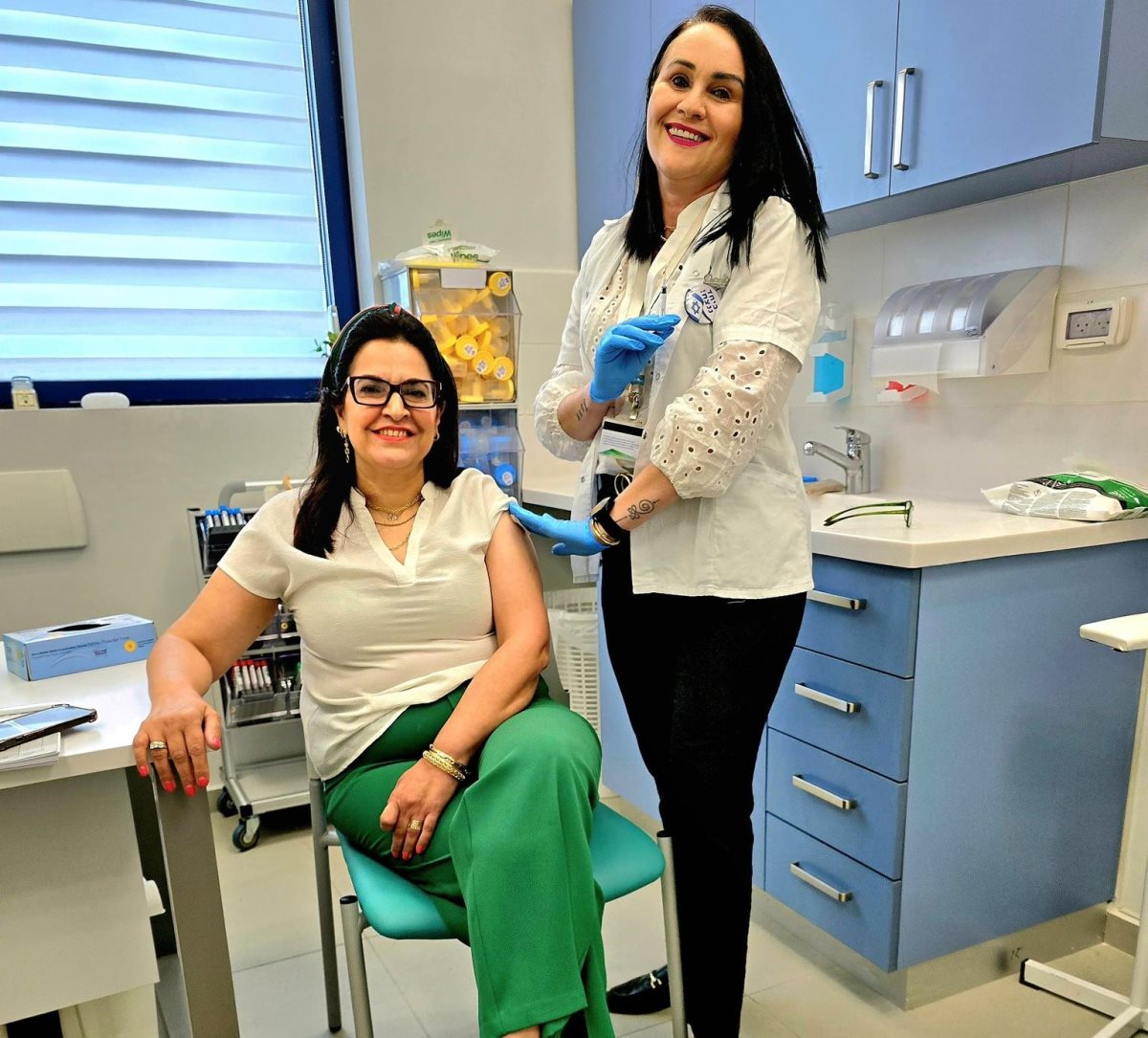 את הביקור במרפאת כרמי גת היא ניצלה יחד עם חברות הנהלת המחוז שהשתתפו בסיור כדי להתחסן נגד מחלת השפעת.