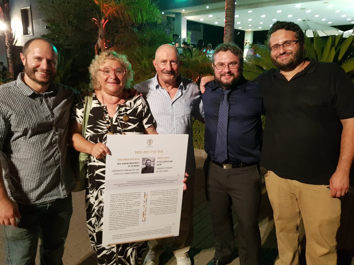 ד"ר בנימין רוזנטל מהמחלקה למיקרוביולוגיה, אימונולוגיה וגנטיקה ע"ש שרגא סגל הפקולטה למדעי הבריאות עבור הישגיו פורצי הדרך בחקר אימונולוגיה השוואתית והשתלת תאי גזע.