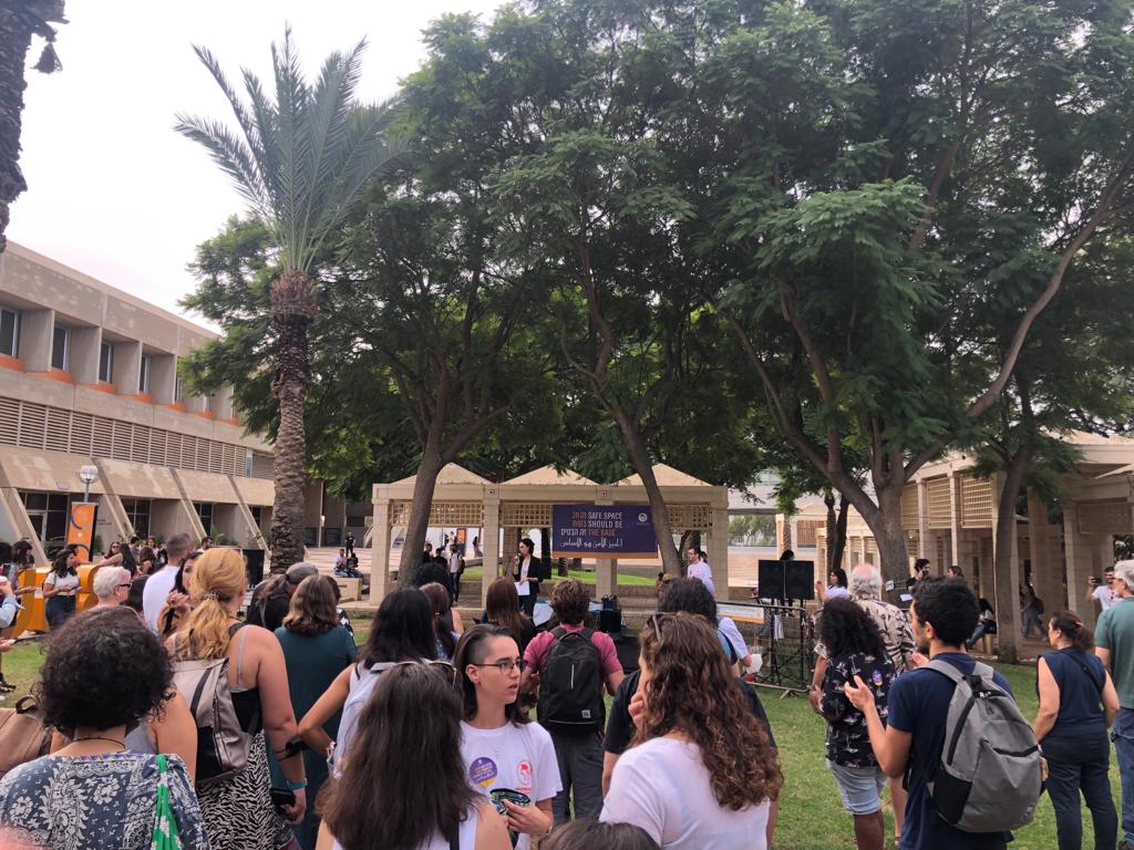 זיו ברבי, דובר האגודה הסטודנטיאלית: ״מרחב בטוח זה הבסיס לחיינו ומגיע לכולנו לחיות בביטחון אישי. חייבים להגדיל את השיטור העירוני, להגביר את האכיפה ולהחמיר את הענישה״. במסגרת העצרת השתתפו 7 דוברים ודוברות שקראו לשינוי מדיניות ומיגור תופעת ההטרדות המיניות ויצירת מרחב בטוח. גם חברת הכנסת יסמין סקס פרידמן מ"יש עתיד" הגיעה לקמפוס והביעה את תמיכתה בפעילות האגודה.