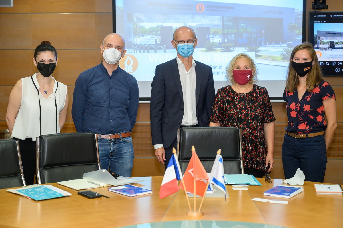 לראשונה מפרוץ מגפת הקורונה הגיעו נציגי השלטון הצרפתי לביקור משמעותי באוניברסיטת בן גוריון בנגב ודנו עם בכירי האוניברסיטה בשיתופי פעולה אקדמיים ומדעיים צרפתיים-ישראליים