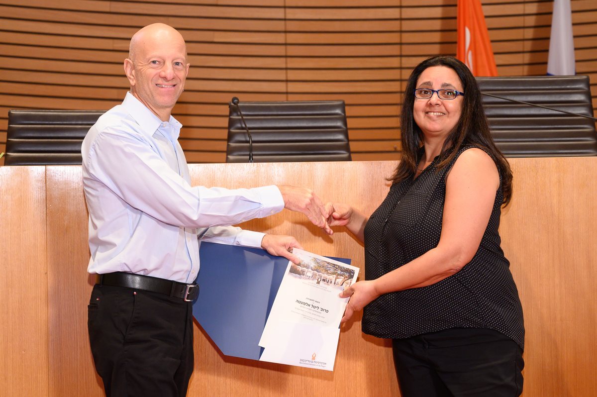 פרס על מחקר פורץ דרך הוענק לפרופ' איריס שי מן המחלקה לבריאות הציבור (על מחקרים פורצי דרך בתחום התזונה והקשר שלה לבריאות האדם), ולפרופ' ליטל אלפונטה מן המחלקה למדעי החיים (על מחקרים פורצי דרך בביולוגיה סינטטית ויישומיה בעולם החלבונים והתא).