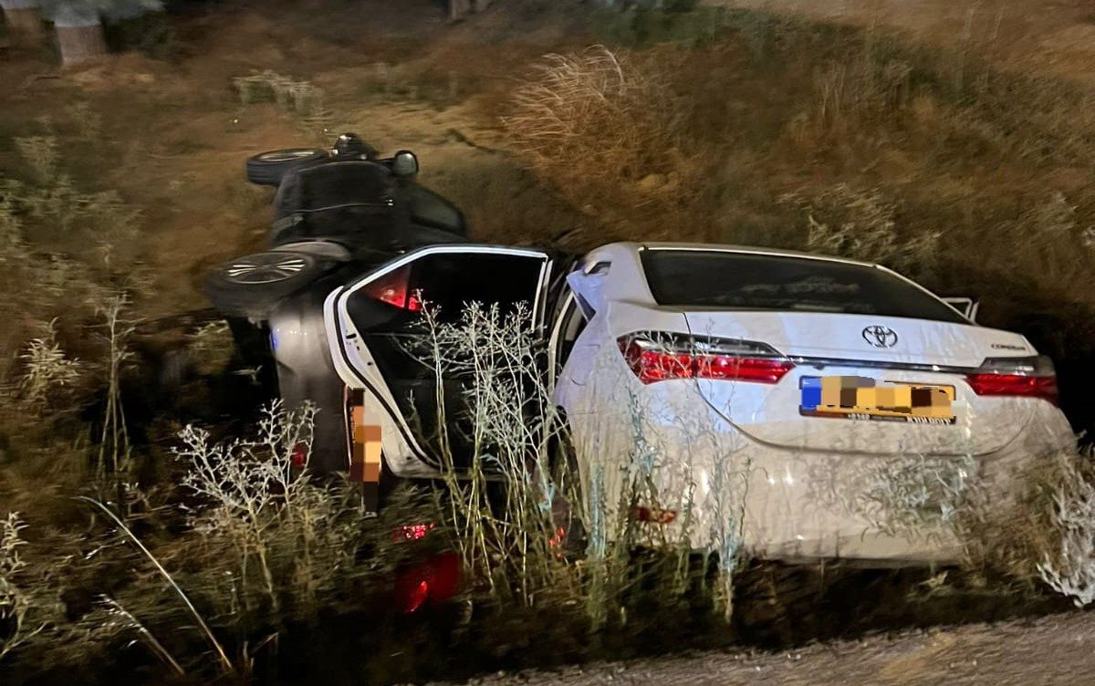 אירוע מפחיד בנגב: דרדרו רכב לתעלה, הנהג נלכד והם נמלטו
