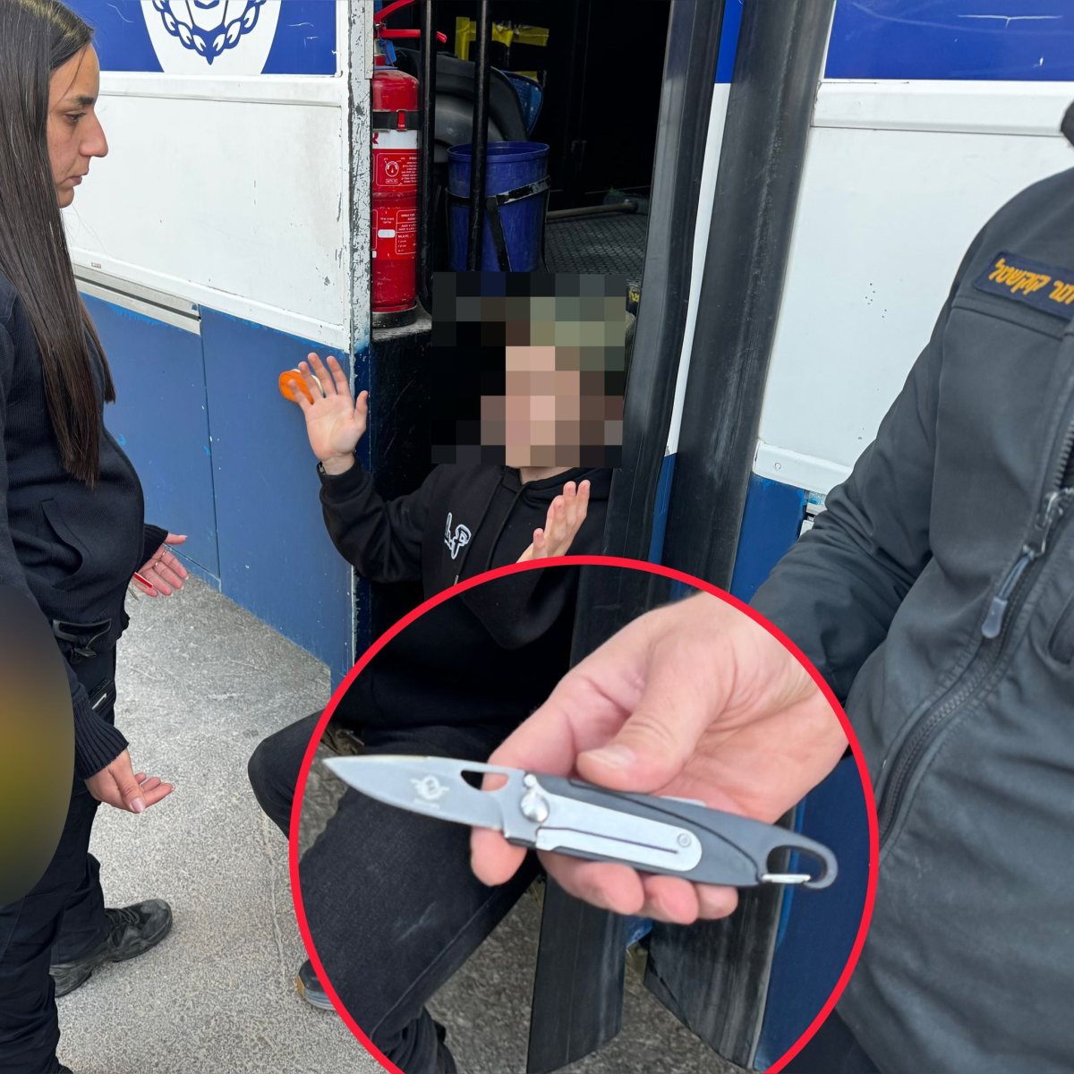 במהלך חיפוש שבוצע על גופו, נמצאה ברשותו סכין מתקפלת. החשוד נעצר במקום והועבר לחקירה בתחנת המשטרה.