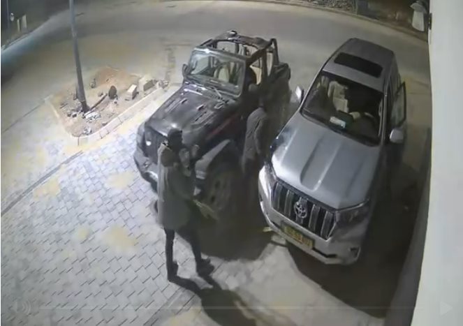 לקראת השעה 2 וחצי לפנות בוקר, הגיעו רעולי פנים לאחד הרחובות הצדדים ביישוב. על המדרכה חנה רכבו של תושב היישוב, ג'יפ טויוטה ששוויו כמה מאות אלפי שקלים. בתוך דקות אחדות, הגיח לפתע ג'יפ נוסף, ובו שותפיהם של הגנבים. הצוות הערמומי, תועד כשהוא מחבר את שני הג'יפים בכבלים ובמהרה נמלטים עם מהזירה.