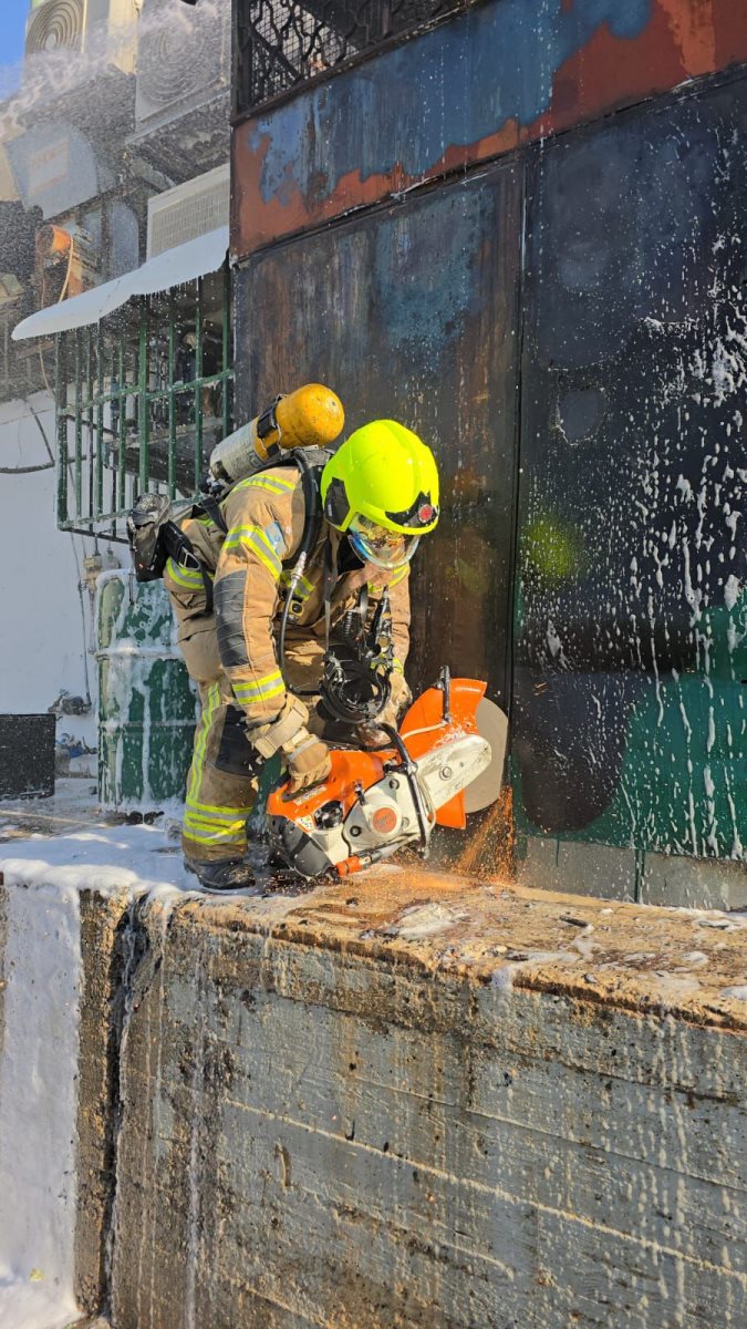 לוחמי האש פרצו את דלת המחסן ומיד החלו בפעולות לכיבוי מוקד השריפה ומניעת התפשטות למבנים נוספים.