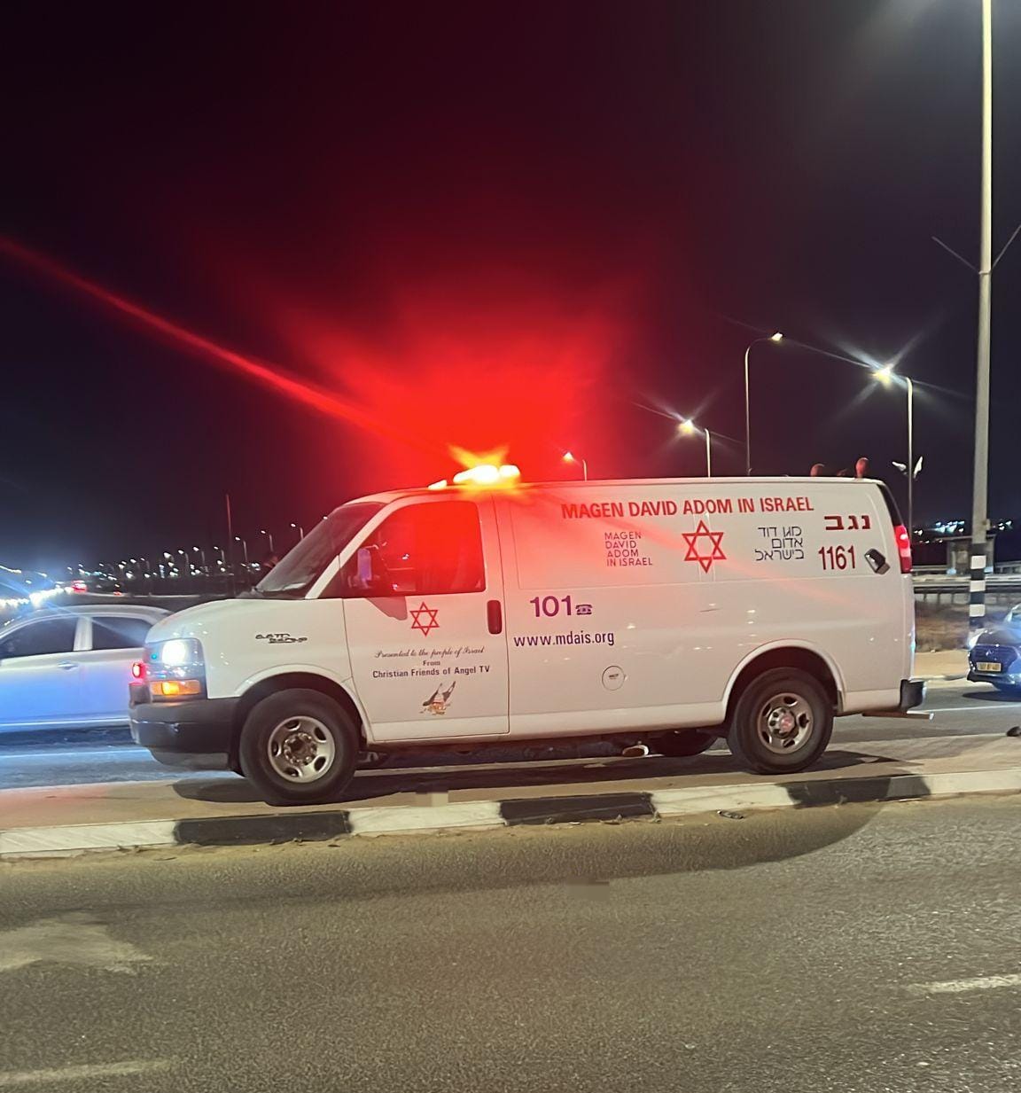 בשעה 22:11 התקבל דיווח במוקד 101 של מד"א במרחב נגב על פצוע ברח' שדרות יגאל אלון בבאר שבע. חובשים ופרמדיקים של מד"א מעניקים טיפול רפואי ומפנים לבי"ח סורוקה גבר בן 40 במצב בינוני עם פציעה חודרת.