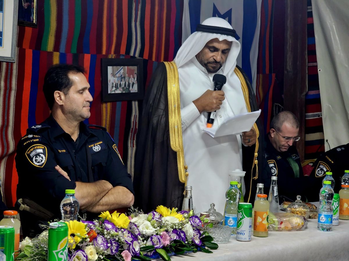 ''יש יהודים ויש ערבים זה לא פסול לחיות ביחד שלמים ושלווים. מברכים על המפגש וברכותיי למפקדים המחוז והמחרב ומפקד תחנת רהט. זהו ערב מרגש אחרי אסון שעבר עלינו ככלל אזרחי מדינת ישראל ללא הבדל, ההבדל הזה מאחורינו אנחנו באותה הסירה. כולנו הותקפנו יהודים וערבים ללא הבדל גזע ודת על ידי חבורה טרוריסטים אנחנו מגנים בשם האילסאם את כל המעשים שנעשו. תודה רבה על ביקור מחמם ומקרב לבבות".