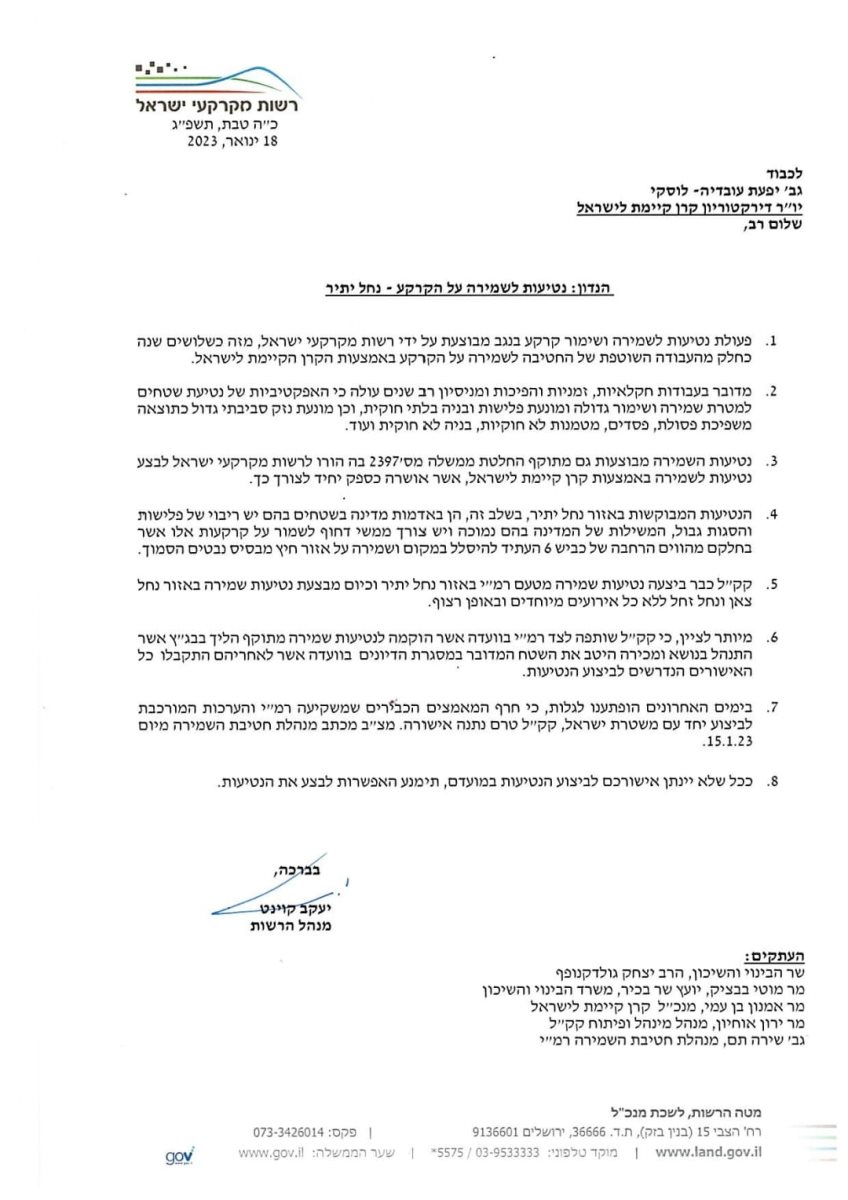 הודעת רמ"י. קרדיט - תוכן גולשים ע"פ סעיף 27א'