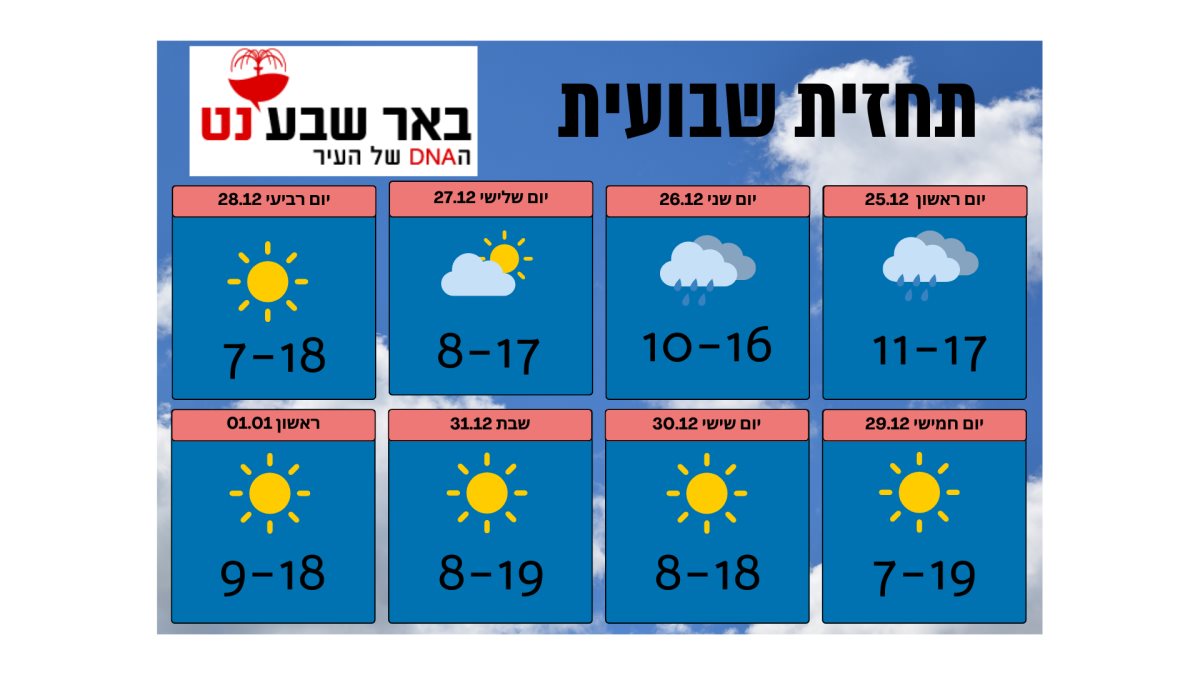 החורף ממשיך: תחזית מזג האוויר בבאר שבע