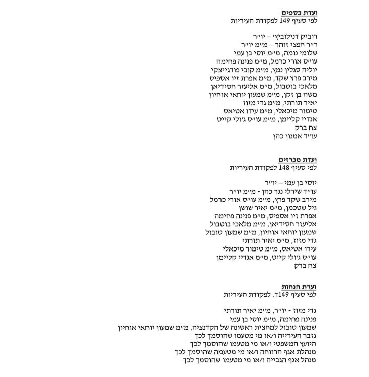 רשימת וועדות הכספים, המכרזים, ההנחות וחבריה: