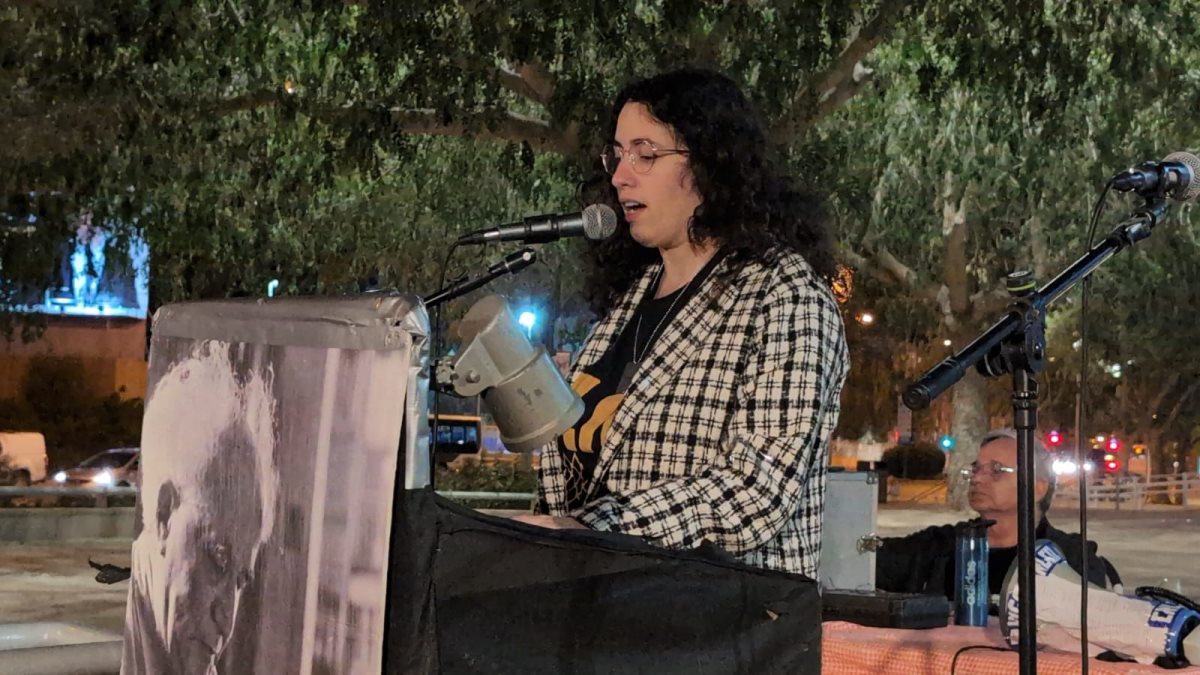 רותם בר נתן, נציגת הדרום דורש שינוי, ארגון צעירים בדרום. הפגנת בחירות עכשיו בבאר שבע. קרדיט תניא ציון וולדקס
