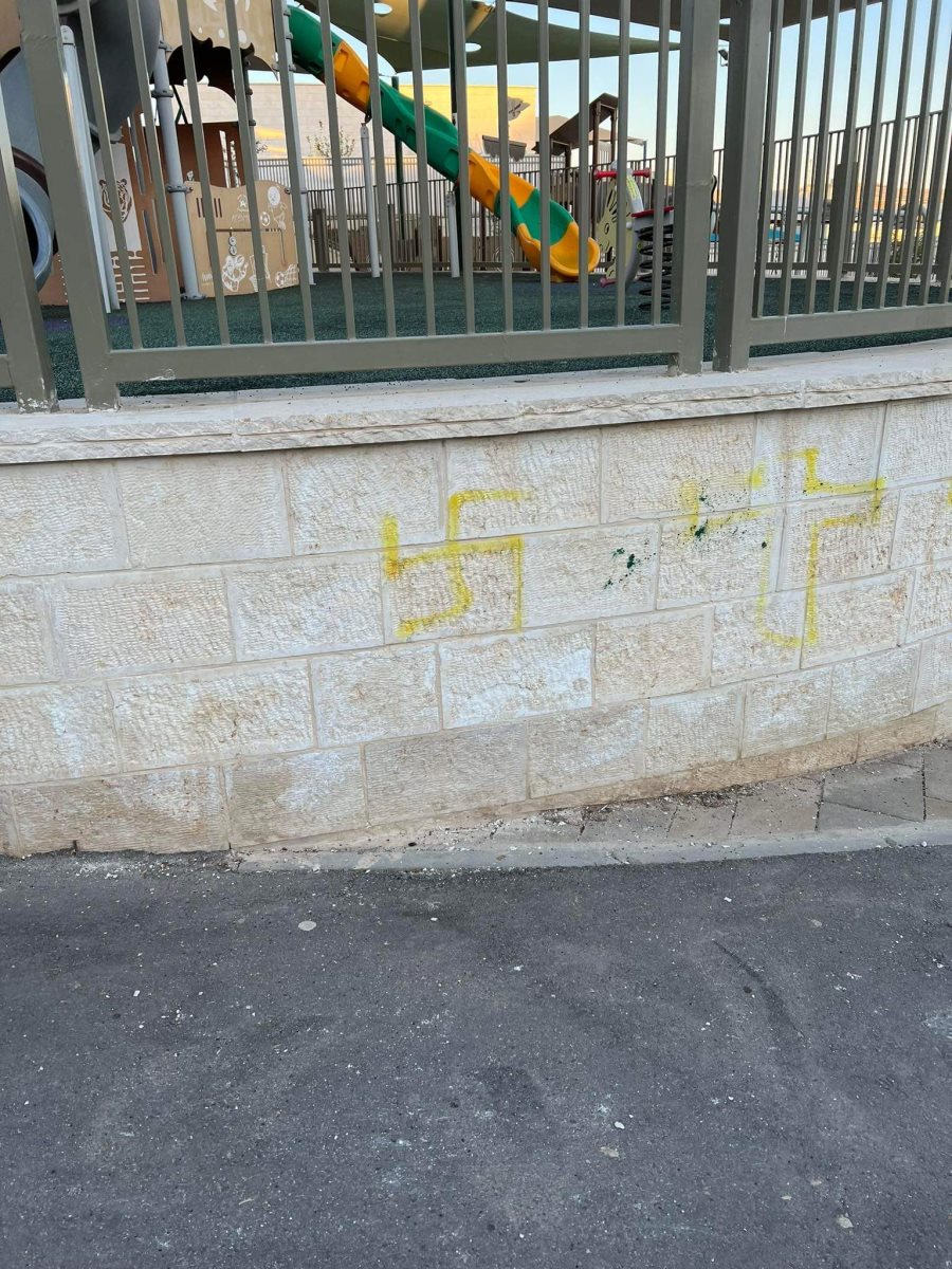 רגע לפני כניסת השבת, נהדמו תושבי שכונת רמות לגלות כי גרפיטי של צלב קרס רוסס על חומת גן המשחקים, שנמצא בסמוך לבית ספר יפה נוף בשכונה.