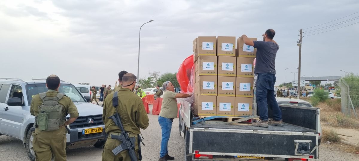 שמעון אלמקייס בעת חלוקת משלוחים לחיילים. קרדיט - צילום פרטי