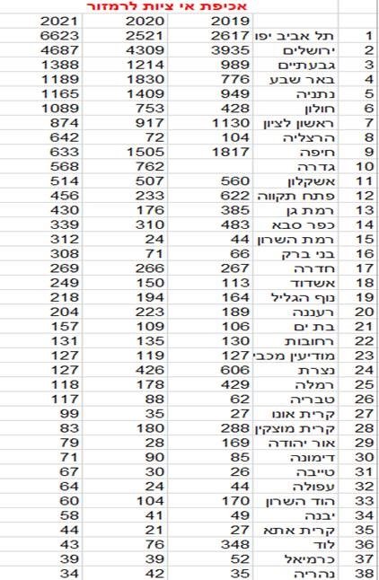 פילוח הדוחות לפי ערים חושף כי בבאר שבע נרשמו 1,189 דו''חות בידי המשטרה, מה שמציב אותה במקום הרביעי ברשימה. מדובר בעלייה חדה לעומת השנים האחרונות, שכן בשנת 2019 נרשמו 776, אך בירידה משמעותית לעומת השנה שעברה - בה נרשמו 1,830 קנסות לעברייני תנועה.