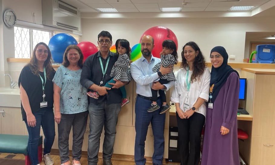 שנתיים אחרי הניתוח הנדיר בסורוקה - התאומות שהופרדו חגגו יום הולדת 3 ופגשו לראשונה את הרופא מבריטניה שהשתתף בניתוח