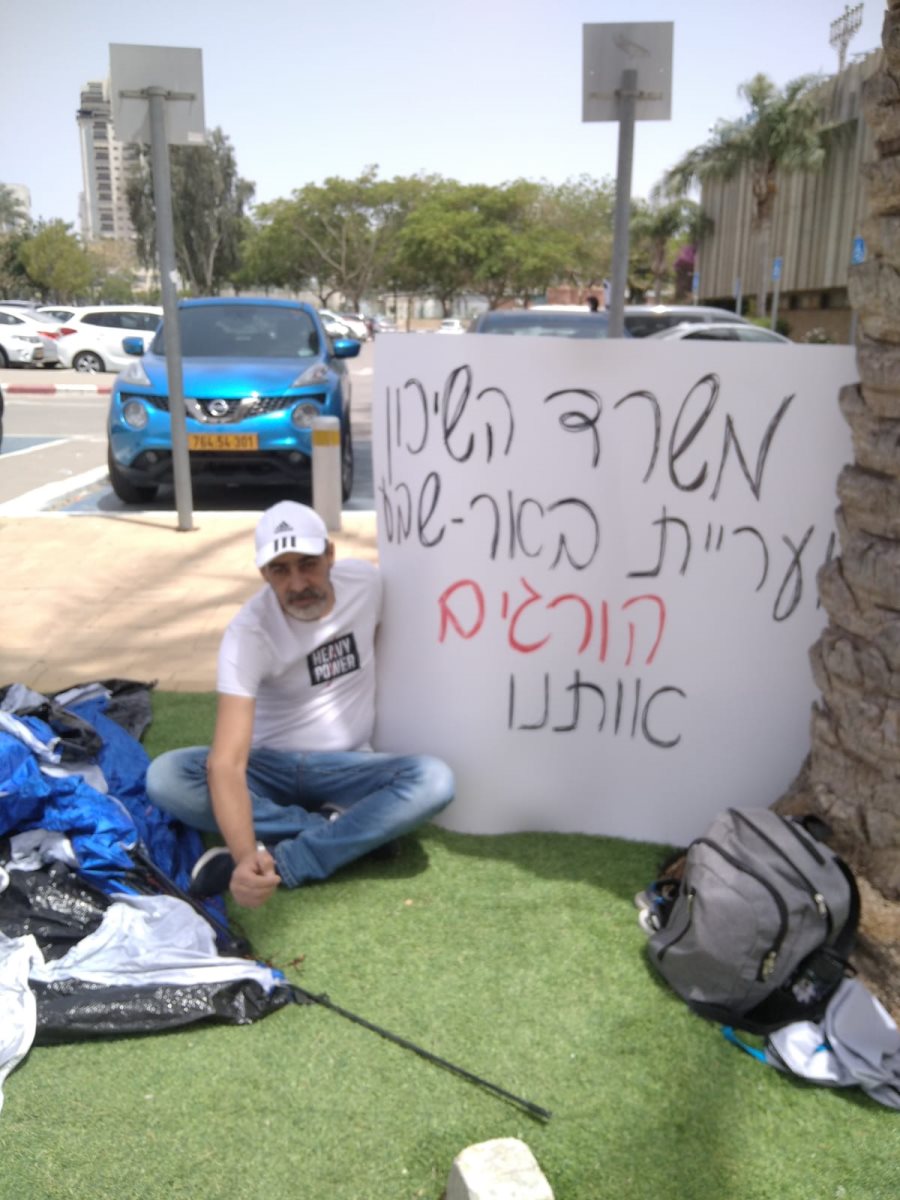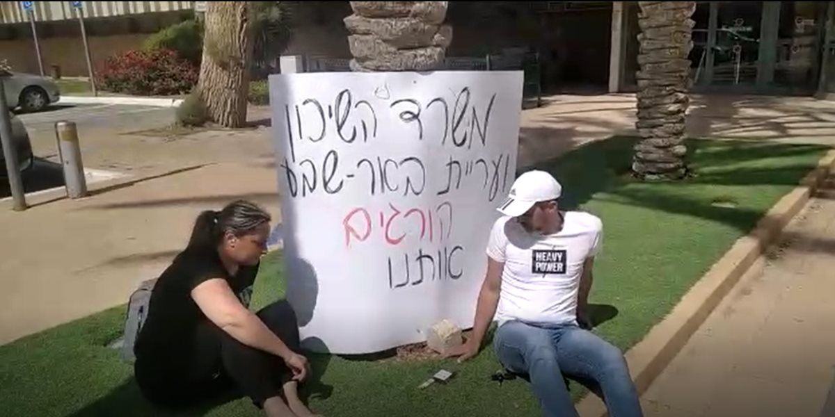הבוקר (א'), החליטו אסתי ובעלה לקחת בלוק ציור ענק עליו כתבה "משרד השיכון ועיריית באר שבע הורגים אותנו", ומשעות הבוקר התמקמו הזוג על הרצפה בחזית בניין עיריית באר שבע. לפני מספר ימים, פנתה אסתי למערכת האתר בבקשה לעזרה. כך היא מספרת בשיחה עימה - ''אני מקבלת קצבת נכות ואני לא עובדת כבר 4 שנים. לפני מספר שנים גם בעלי עבר תאונה קשה בעבודה והוא אפילו היה בכיסא גלגלים במשך תקופה. בזמן הזה השכרנו דירה באחד מהמשעולים בשכונה ה', כשבנוסף לכך היינו מקבלים סיוע מוגדל בשווי 3,100 ש"ח ממשרד השיכון".