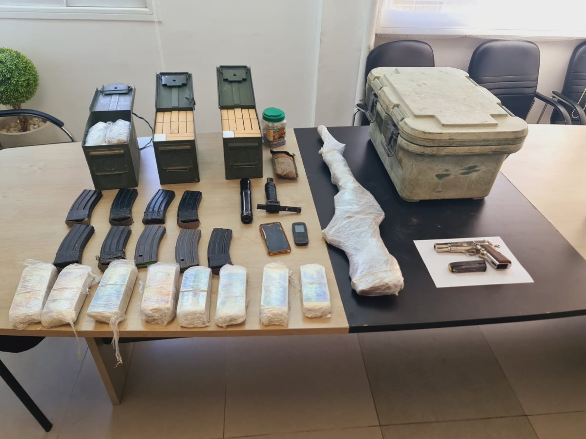 שוטרי המחוז הדרומי של משטרת ישראל וחיילי צה"ל איתרו הבוקר רכב ובו אמצעי לחימה הכוללים נשק מסוג M16, אקדח מסוג FN, מחסניות ותחמושת ואריזות שהכילו 400,000 ש"ח