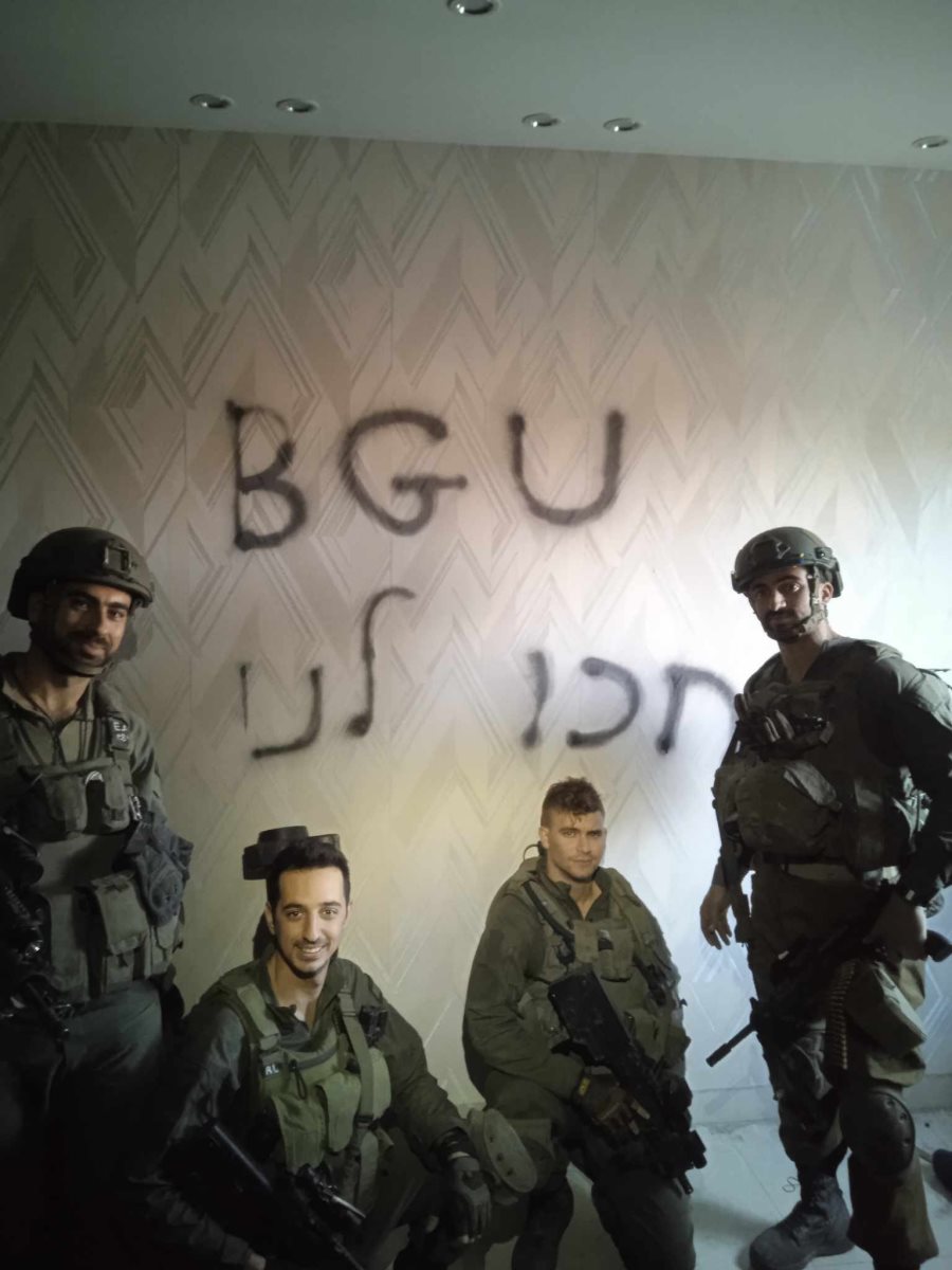 "אוניברסיטת בן גוריון קרויה על שמו של דוד בן גוריון שאמר "בנגב ייבחן העם בישראל" על כן היא מחויבת להראות סולידריות ולשים בראש מעייניה את ערכיה ואת אהבת הארץ הזאת. לא מתקבל על הדעת שמשרתי המילואים שמונים אחוז לא מבוטל מקהילת הסטודנטים והמרצים באוניברסיטה, יאלצו לדאוג לעתידם האקדמאי והכלכלי באמצע מלחמת קיום, בעוד הם מקריבים את נפשם וגופם עבורנו ועבור המשך הקיום של מדינת ישראל לדורות".