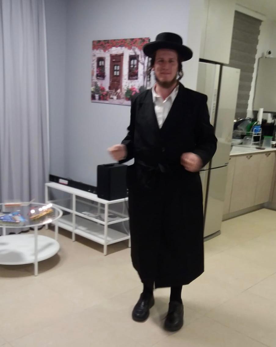 בן 22, גובהו 1.75 מטר לערך, מבנה גופו רזה, גוון עורו בהיר, עיניו בגוון כחול-ירוק, שיערו שחור ופיאות עם מגבעת שחורה. לבוש חרדי שחור-לבן.