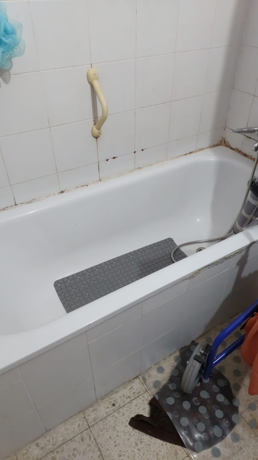 לטענת א', היא פנתה לעמידר לאחר שקיבלה אישור ל'הנגשת הבית' מטעם מרפא בעיסוק של קופת החולים, בבקשה להוריד את האמבטיה ולעשות מקלחון מה שיאפשר לה להיכנס ולהתקלח לבד באופן עצמאי: "פניתי אליהם כמה פעמים והתחננתי לעזרתם אך נאמר לי שזה בטיפול, תשובה שאני שומעת כבר תקופה ארוכה, כאשר בפועל כלום לא קורה. לאחר תחנונים רבים, כשכבר הגיע נציג מטעם עמידר לביתי ב- 30.5 בכדי לבדוק אם יהיה ניתן לעשות מקלחון, הוא אמר כי הנושא צריך לעבור וועדה בעוד 3 חודשים, ואז אולי יהיה אישור".
