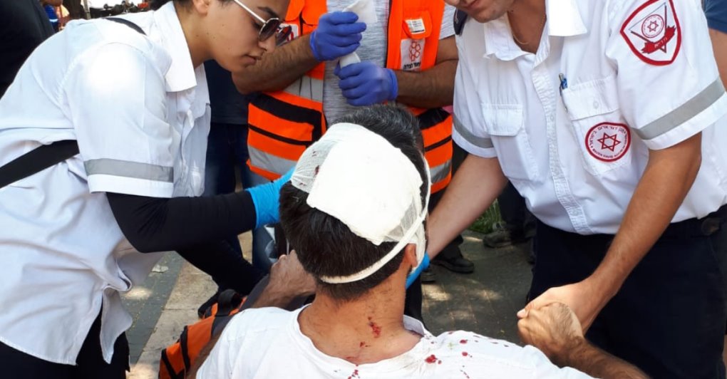 כתוצאה מכך, אדם נפצע בראשו והחל לדמם, האנשים הרבים שהיו במקום סייעו לו בטרם הגיע אמבולנס של מד"א.