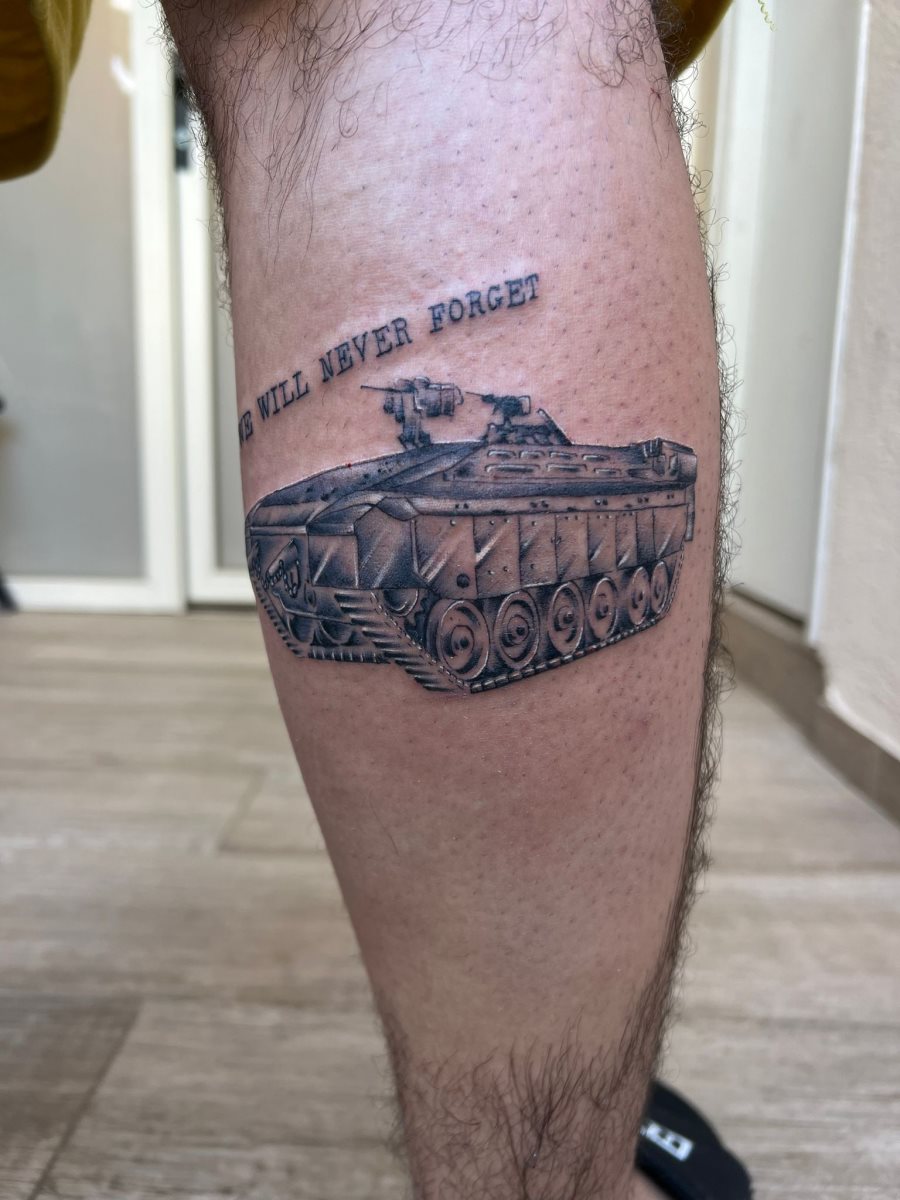 המקועקע: הקעקוע לזכר החבר הכי טוב שלו מגיל אפס, שהיה לוחם בגולני. היה מהכוח הראשון שהגיע לאחד הקיבוצים שהותקפו ב7.10. הוא נפל בקרב מול המחבלים הארורים. הקעקוע מסמל את השיר שהם שמעו הרבה יחד וסימל את החברות העמוקה ביניהם: השיר ״אחי״ של ליאור נרקיס. הנקודה שמופיעה בקו הפסקול מסמלת את השנייה בה נאמרת המילה ״אחי״ בפעם הראשונה בשיר.