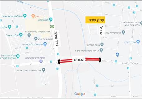 במסגרת פרויקט שדרוג ופיתוח תשתיות באיזור התעשייה עמק שרה שבדרום באר שבע, בלילות שבין שלישי ורביעי וכן רביעי וחמישי (27-29.8) ,ייחסם הרמטית לתנועת כלי רכב רחוב הבונים בקטע שבין רחוב הבדיל ועד דרך אילת, משני כיווני הנסיעה עקב ביצוע סילית הכיכר, כך נודע ל"באר שבע נט".