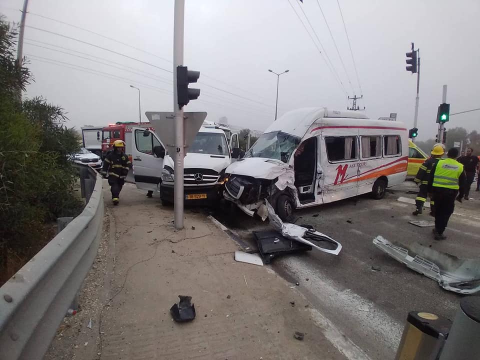 תאונה קשה בבית הגדי: 8 פצועים מהתנגשות רכב הסעות במשאית
