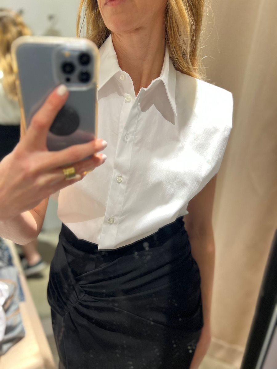 החולצה הלבנה המכופתרת היא פריט הכרחי במלתחה דווקא בגלל שהיא כל כך ורסטילית, יכולה להשתלב פעם אחת עם חצאית מיני שחורה, פעם עם חצאית דרמטית וסניקרס ופעם עם מכנסי ג'ינס וחגורה.
