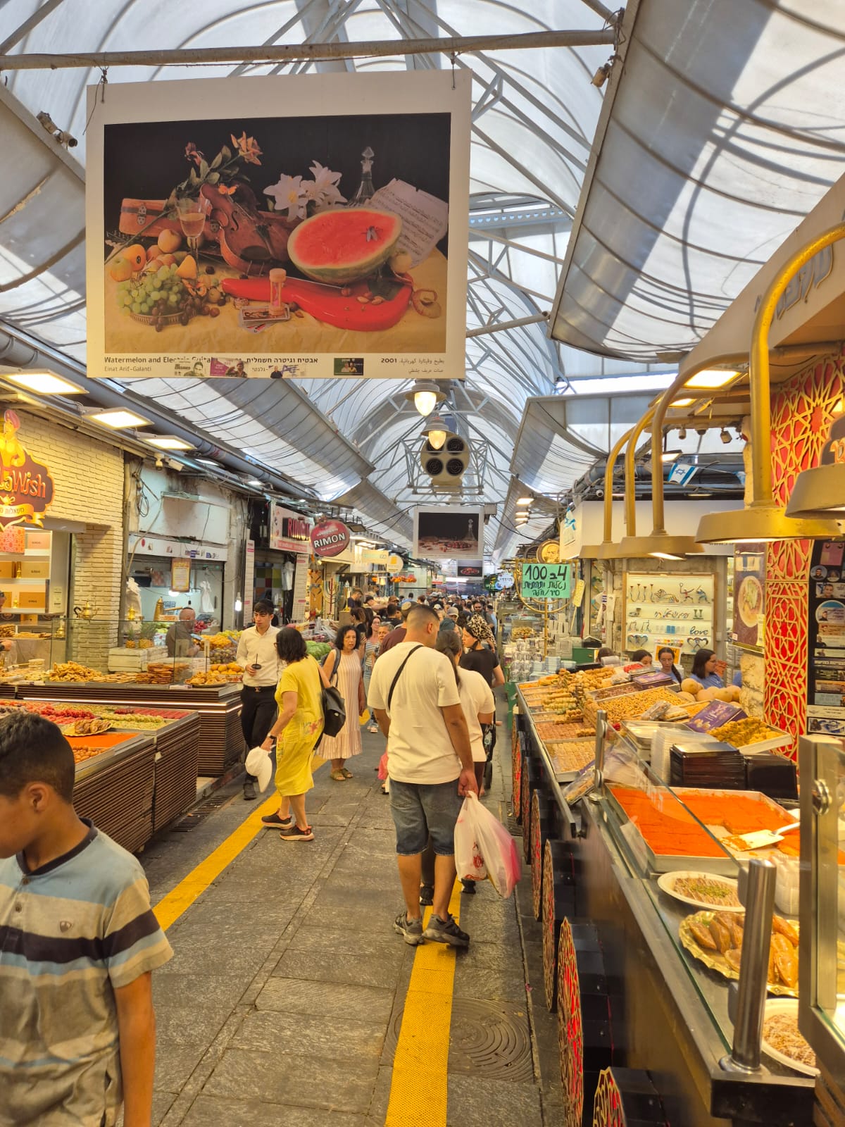 משם המשכנו לשוק מחנה יהודה – גם הילדים נהנו להסתובב בין הדוכנים, לעשות טעימות של פירות יבשים, מיצים, חלבה ומתוקים. סיימנו את הסיבוב בכנאפה מתוקה ונפלאה.