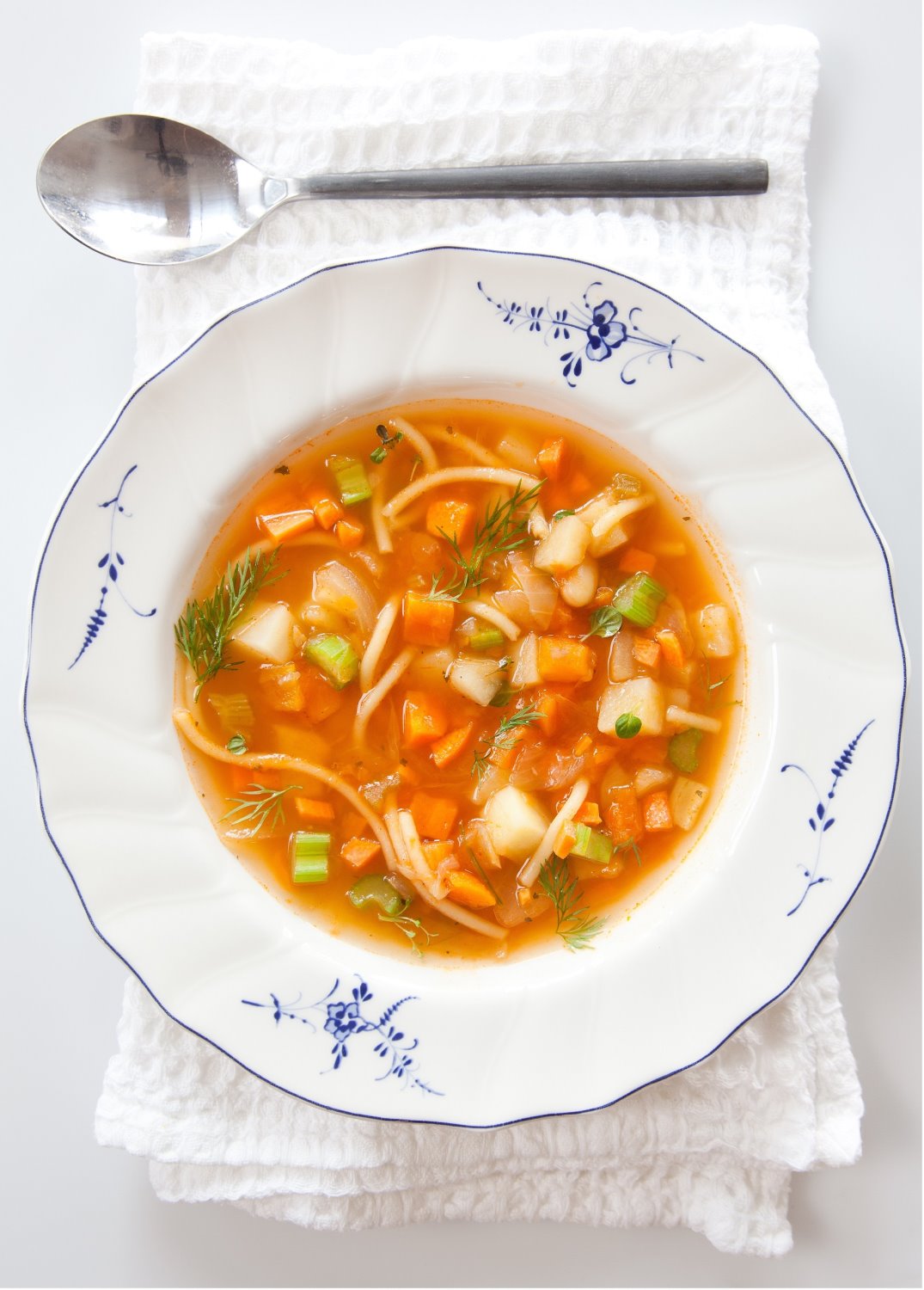 מביאים לרתיחה ומבשלים על אש קטנה מכוסה עד שהירקות רכים.