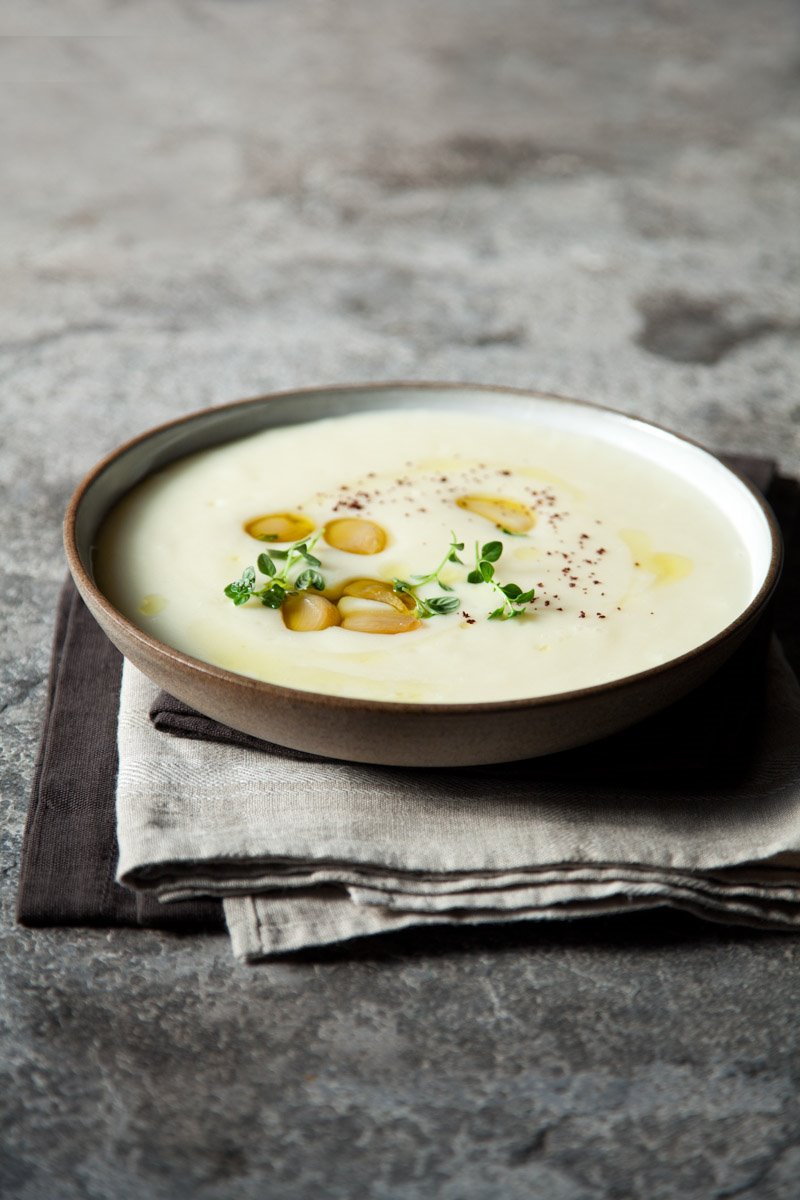 מגישים מנת מרק עם מספר שיני שום קונפי מעל, ואני ממליץ להוסיף גם לחם קלוי.