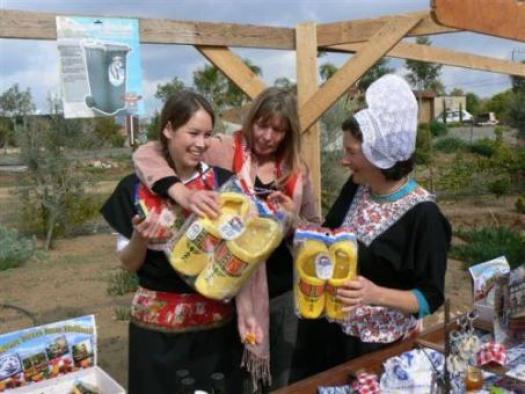 "קופי-שופ" הולנדי עם מאכלי בוקר מיוחדים, דוכן צ'יפס בסאטיי הולנדי, עוגיות חמות מהולנד "פורפטייס" .מכירת פקעות צבעונים מהולנד, תיבת נגינה ענקית מהולנד. "סטרופ-וואפל" מהולנד. מבחר מזכרות מהולנד.