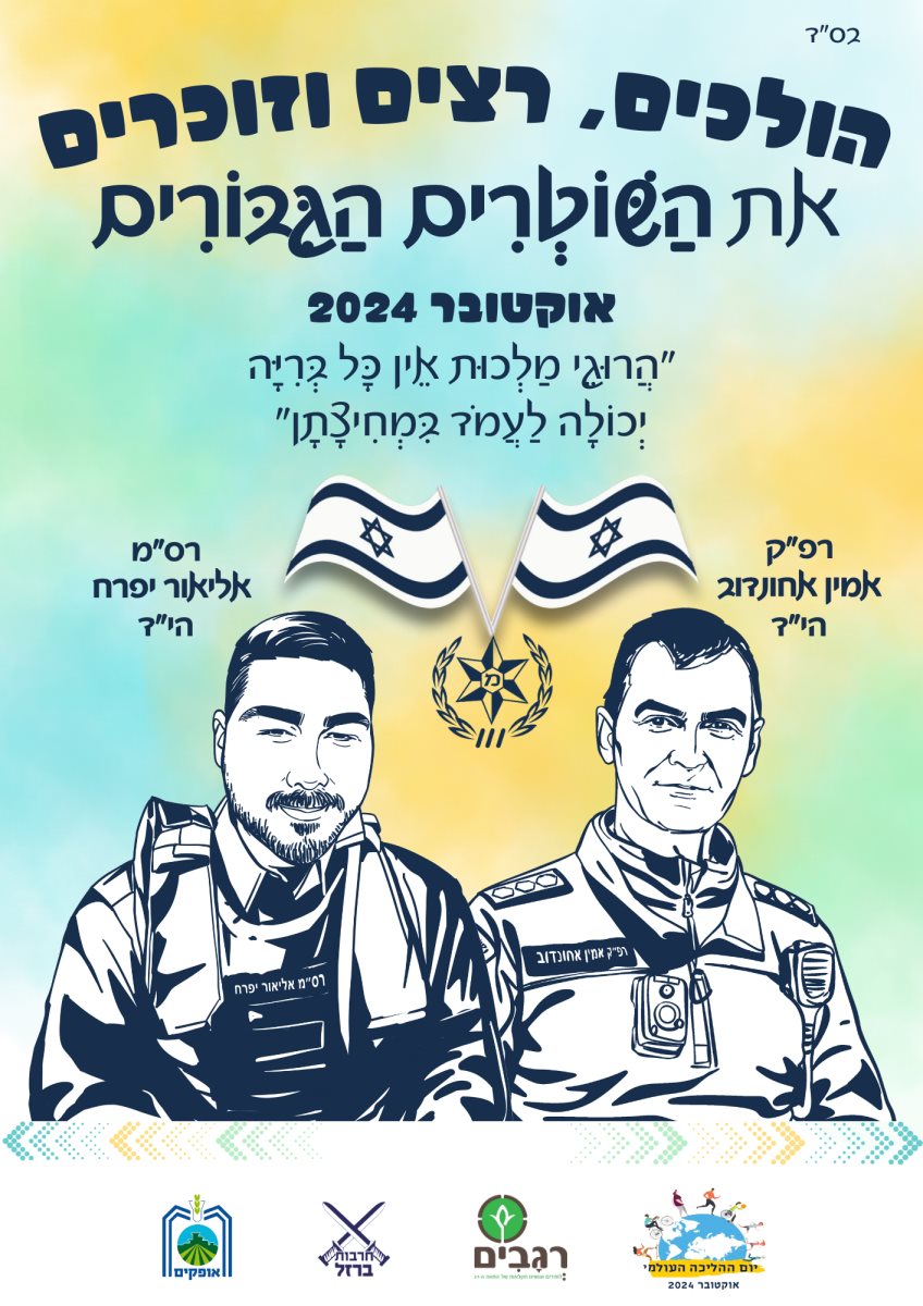 ב30.10 יתקיים מרוץ לעילוי נשמתם שארגנו האלמנות כדי שכולם ירוצו ויזכרו את הבעלים האהובים שנפלו בקרבות על הגנת המולדת. המרוץ נקרא בשם: "הולכים, רצים וזוכרים את השוטרים הגיבורים״. מדובר במרוץ משפחות שיחל מרגבים עד לפארק הידידות - שם מתכננות האימהות פעילות משפחתית שתכלול חלוקת מדליות, יוגה, זומבה, חלוקת ארטיקים ואף תערוכת כלים של יחידת יואב. כל זאת מתוך רצון להנציח זיכרון חוויתי של גבורת השוטרים שנפלו בקרב בשבעה באוקטובר.