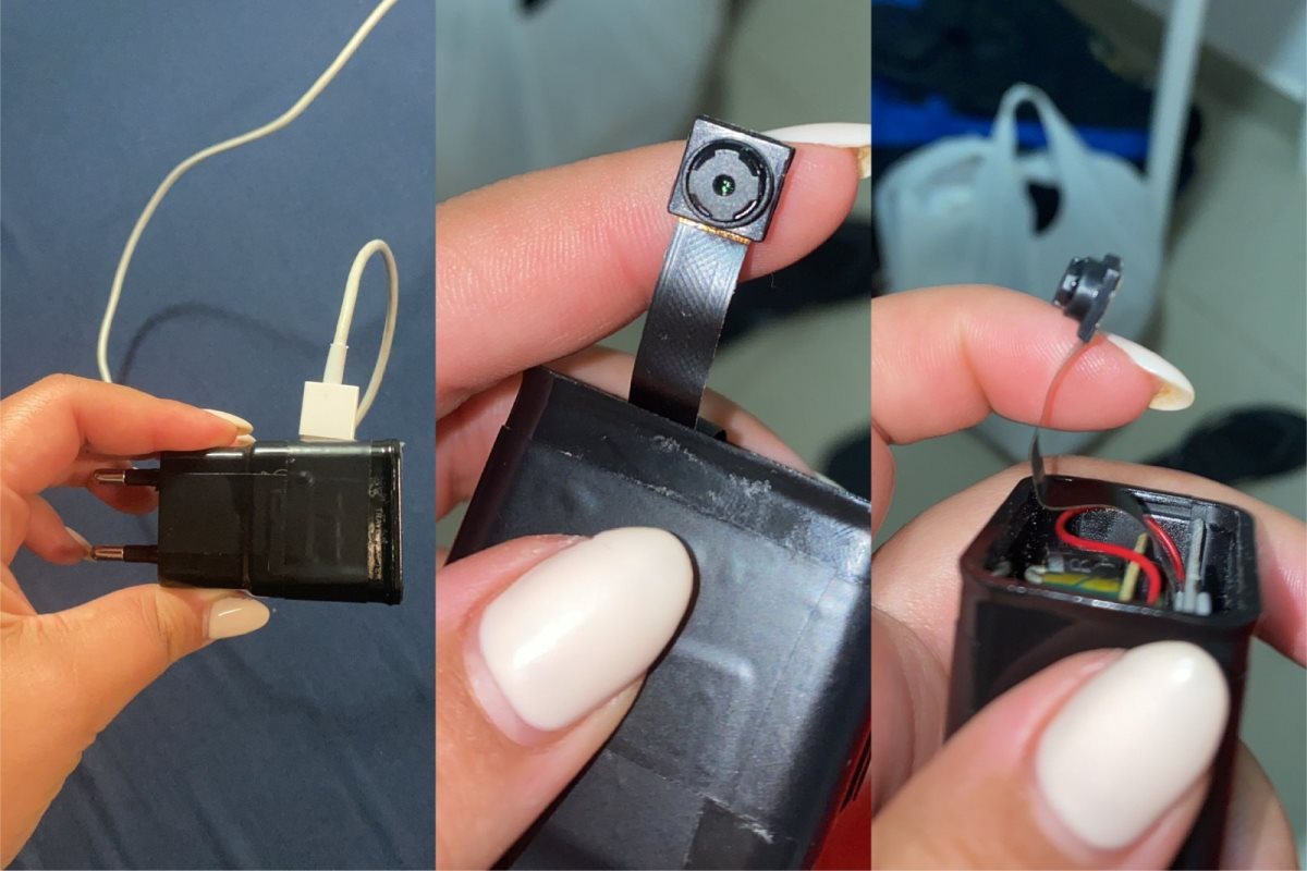 "רגע לפני שנכנסתי להתקלח, פתאום הייתה לי מעין אינטואיציה מסוימת שמשהו פה מוזר. לא יודעת איך ולמה אבל זה הוביל אותי לראש של המטען. ופתאום אני קולטת מצלמה קדמית של טלפון, ולא הבנתי אם זה מצלם ישירות או משדר לו. מיד לאחר מכן יצאתי מהחדר בהיסטריה ובצרחות. ושאלו אותי מה קרה, ושאני חייבת להתקשר לאמא שלי מיד".