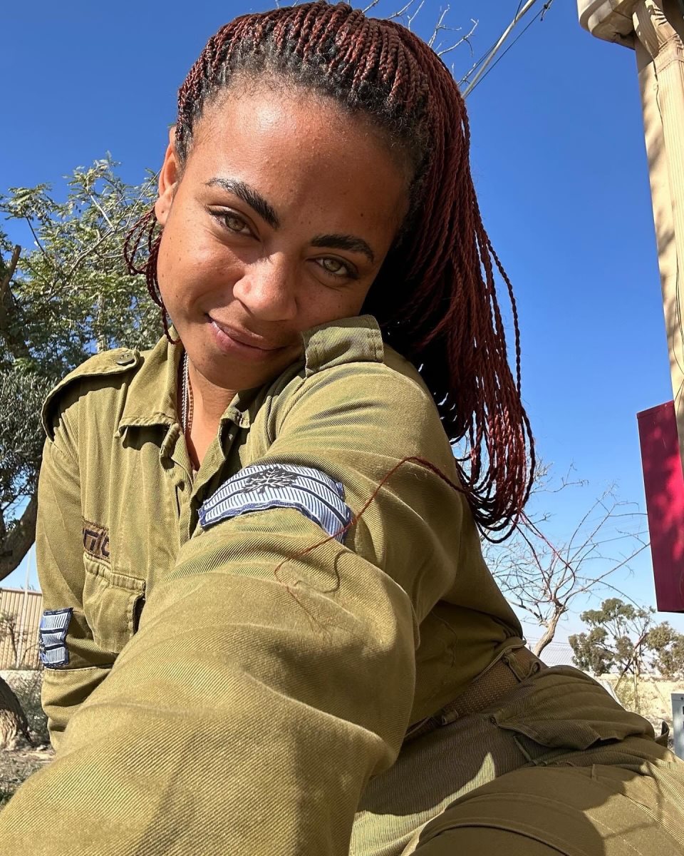 "כיום אני נגדת לוגיסטיקה בחיל האוויר. התחלתי את השירות שלי ב"מגל" (מפקדים של טירונות לרובאי 02) בשנת 2018. לא סיימתי את ההכשרה מאחר והחבר הכי טוב שלי בטירונות ניסה להתאבד. באותה תקופה עפתי מהבית ונהייתי חיילת בודדה, ללא עורף משפחתי, ולא התמודדתי עם המצב כמו שצריך. אז עברתי ללוגיסטיקה ומאז אני אוהבת מאוד את הצבא; רציתי לחתום קבע אבל מאחר והשתחררתי ב-2020 (שיא הקורונה) התקבלתי לתפקיד בקבע בחיל האוויר אבל ביטלו לי את הגיוס בחזרה בגלל הקורונה. באוגוסט 2023 חזרתי לקבע להיות נגדת בחיל האוויר", היא מתגאה.