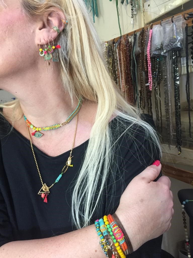 "אסימטרי מאוד צבעוני, שילוב של פעם ועכשיו טרנדי עם קריצה משלי מחומרים כמו ציפוי זהב 24 קראט, אבנים, אבני חן, חרוזים. זוכרת שלפני 15 שנה חברה טובה שלי, אשתו של ארקדי דוכין, סימה, הוציאה קליפ ואני זאת עזרתי לה  ועיצבתי את התכשיטים לקליפ. היא סכמה עלי ועל הטעם שלי ויכולתי לתת את כל כולי. היא הצליחה להוציא ממני משהו אמיתי שריגש אותי. אהבתי את הקליפ וזוכרת שיצאו תכשיטים מיוחדים וכל ההפקה התלהבו".