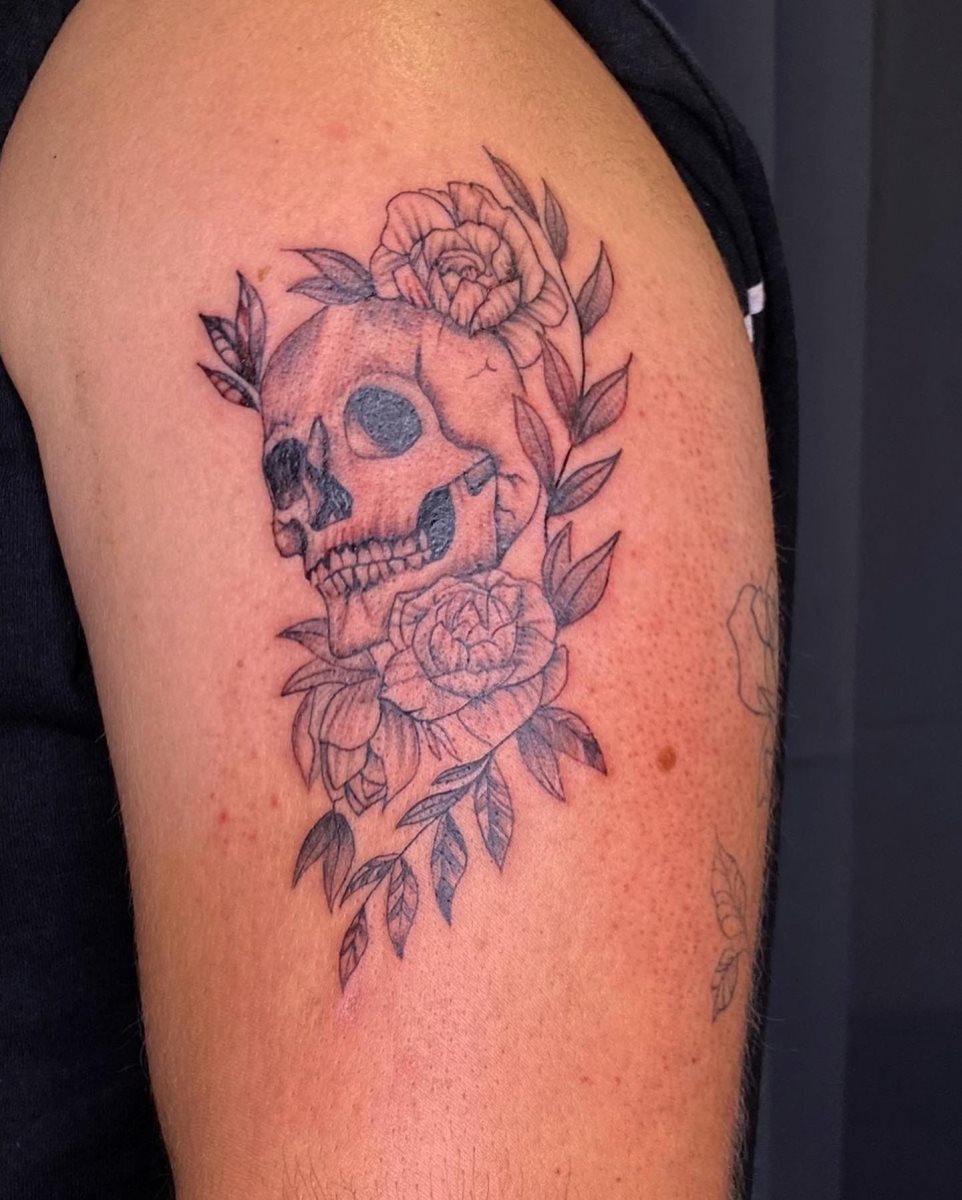 "עשיתי שלד עם פרחים. אומנם הוא לא כזה גדול, אבל יש לי אובססיה לקעקע שלדים. אני ממש זורם עם המחט על העור וכבר הגוף לבד עושה את התנועות הנכונות כדי שזה יצא מטורף. השלד כעיקרון הוא חשוף, אין בו הגנה וכל חיי הילדות ככה, בגלל זה אני מתחבר לשלד"