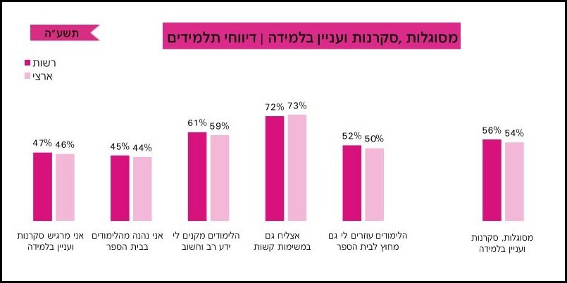 47% מהתלמידים ציינו כי הם מרגישים סקרנים ומראים עניין בלימודים, אחוז אחד מעל הממוצע הארצי.