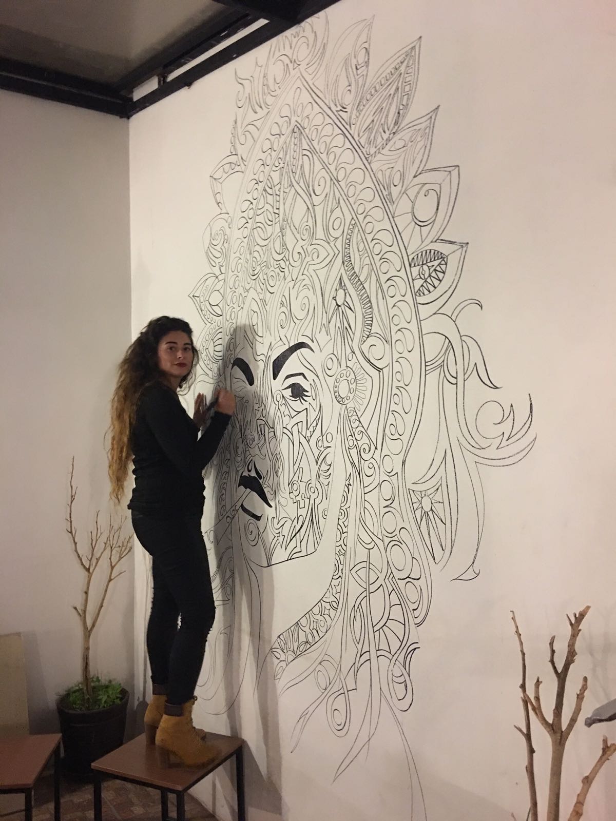 "את הטיול הגדול התחלנו כמו כל הישראלים ב-'ריצה' ממקום למקום ומאתר נופש אחד לשני. באיזשהו שלב קרה משהו שגרם לנו להוריד הילוך ולהתחיל ליהנות ולחיות את הרגע. היינו אמורות לעלות על טיסה בבואנוס איירס שבארגנטינה, אך הטיסה התקיימה ביום שבת ולכן החלטנו לדחות אותה, שם קרה השינוי הגדול. הייתה לי מחברת, מעין יומן, שבה ציירתי המון ציורים. באחד הערבים בהם שהיתי בבית חב"ד בבואנוס איירס נחשפו שם לציורים שלי, התלהבו מהם וביקשו ממני לצייר להם ציור קיר גדול. באותו רגע הסכמתי מכיוון שאני מאד אוהבת לצייר ובתוך לילה אחד אינטנסיבי ציירתי ציור קיר גדול, את חכם חנוכה המפורסם מסרטי הבורקס. אנשי בית חב"ד התלהבו מאד מהציור ופרסמו אותו בדף הפייסבוק שלהם, זה תפס תאוצה ומכאן הכול השתנה".