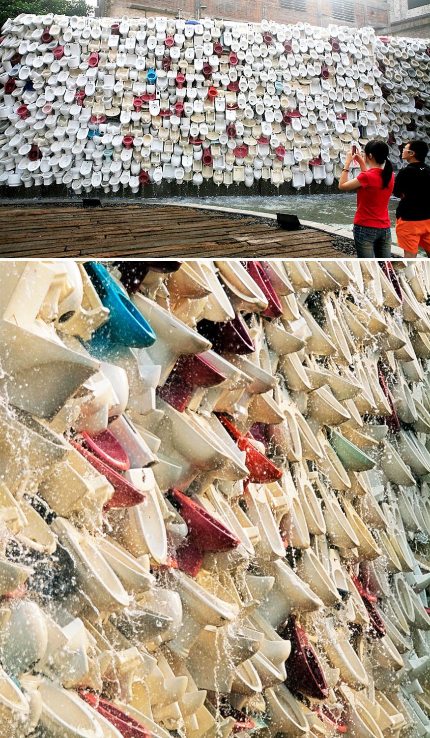 טוב את זה אל תראו לרוביק כי לא היינו רוצים מזרקת אסלות בבאר שבע, אבל תודו שזה מגניב. המזרקה בנויה מ-10,000 אסלות משומשות וממוחזרות, כיורים ומשתנות. הפסל פרוס על קיר של 100 מטר אורך ו-5 מטר גובה. הפסל נבנה במקור ב-2009 לפסטיבל מקומי, לקח חודשיים לבנות והוא נשאר שם עד היום. (מקור: amusingplanet)
