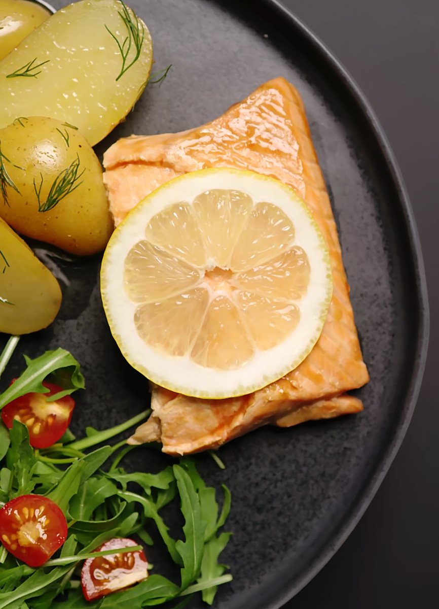 סלמון ברוטב טריאקי וקונפי תפוחי אדמה