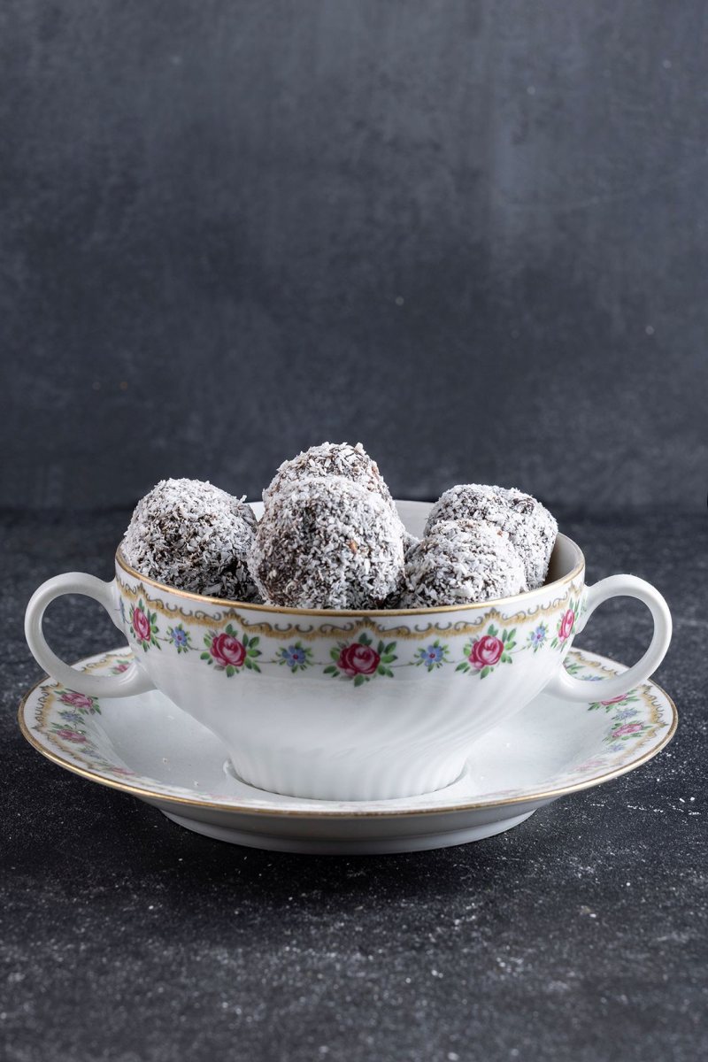 3. יוצרים כדורים קטנים בידיים רטובות ומגלגלים בקוקוס טחון, אגוזים טחונים או סוכריות צבעוניות לציפוי.