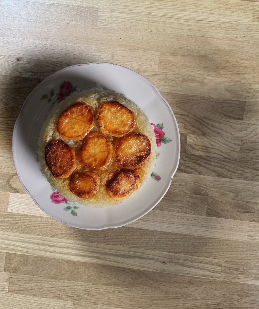 2 תפוחי אדמה מקולפים וחתוכים לפרוסות עגולות