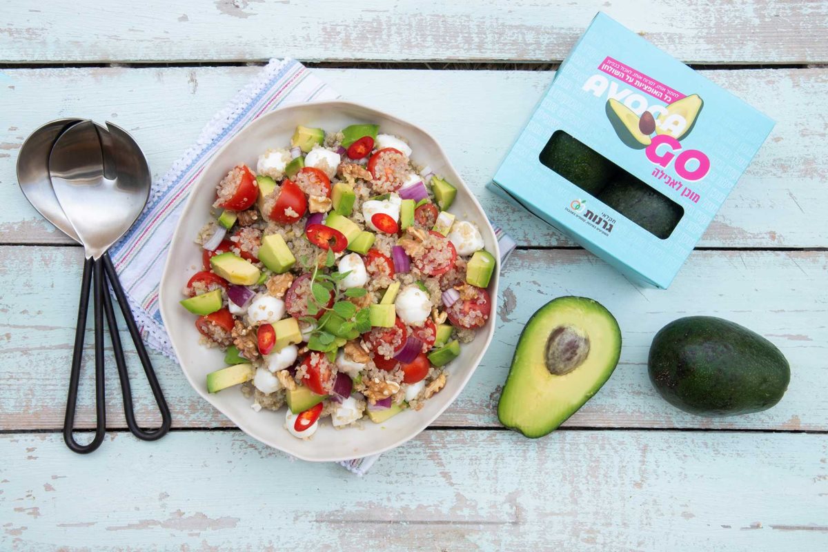 סלט אבוקדו עם קינואה ומוצרלה