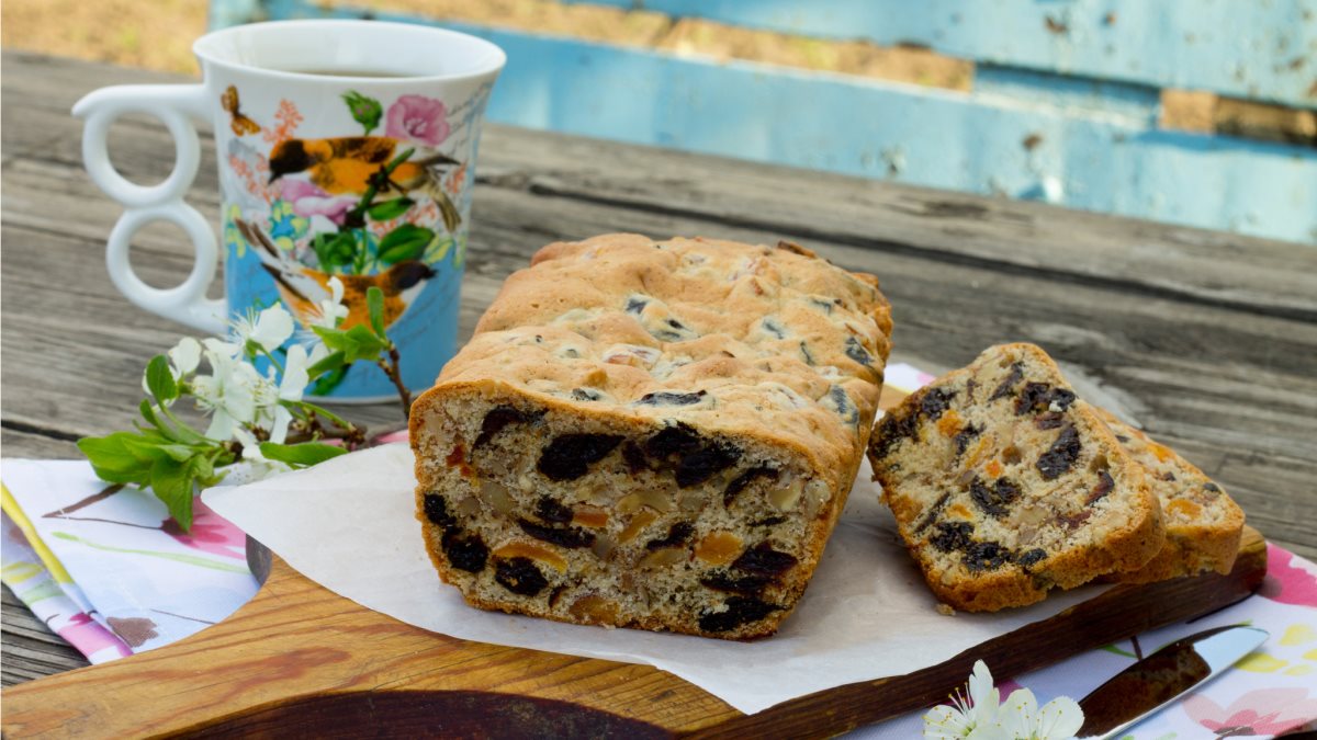 מחממים תנור ל- 180 מעלות. מערבבים היטב את הפירות היבשים עם הקמח, כך שיצפה את חתיכות הפרי מכל הכיוונים. מוסיפים את שאר החומרים ומערבבים רק עד לקבלת תערובת אחידה. מוספים גם את הקמח עם הפירות. מעבירים לתבנית אינגליש קייק משומנת בתרסיס שמן ואופים כ- 45 דקות, או עד שקיסם יוצא מהעוגה עם מעט פירורים. אפיית יתר עלולה לייבש את העוגה. מצננים את העוגה ופורסים ל- 10 פרוסות.
