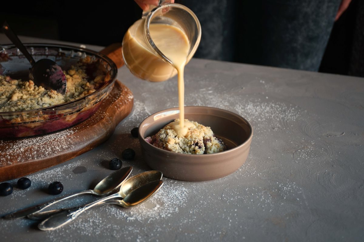 הינה מתכון שיגרום לכם להנות מקראמבל פריך של תפוחי עץ ואוכמניות, במתכון מקורי וטעים