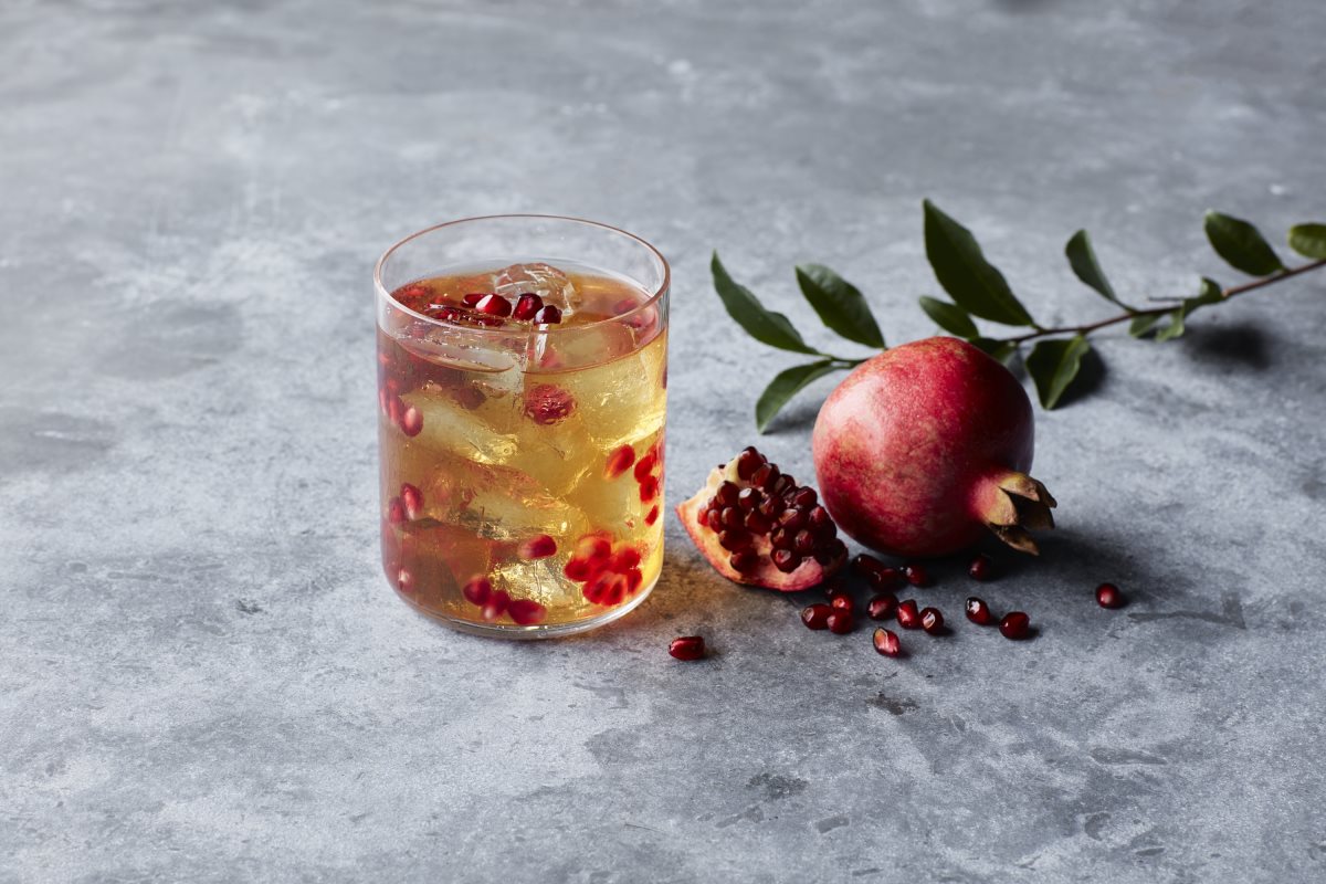 - הוסיפו קרח ומשקה צמחי נמס בטעם לימון וגרגרי רימון טריים.