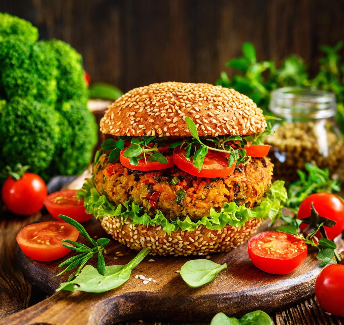 מומלץ להגיש לצד ההמבורגר סלט ירקות חי.